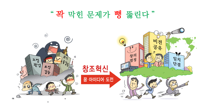 2. Àü Á÷¿ø¿¡°Ô Ѩ¸¦ ºÒ¾î³Ö°í âÁ¶Çõ½Å DNA¸¦ ½É¾î ȸ»ç Àüü¸¦ Çõ½ÅºÐÀ§±â·Î È® Å»¹Ù²Þ ½ÃŲ´Ù. |