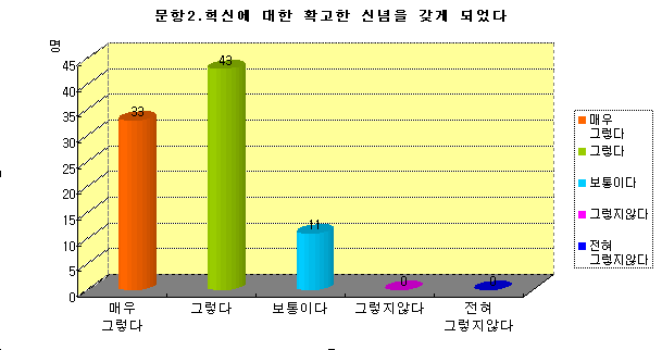 ¢ºÃÑÀÀ´äÀÚ 87¸í Áß ¸Å¿ì±×·¸´Ù(33%), ±×·¸´Ù(43%), º¸ÅëÀÌ´Ù (11%), ±×·¸Áö ¾Ê´Ù(0%), ÀüÇô±×·¸Áö¾Ê´Ù(0%)·Î